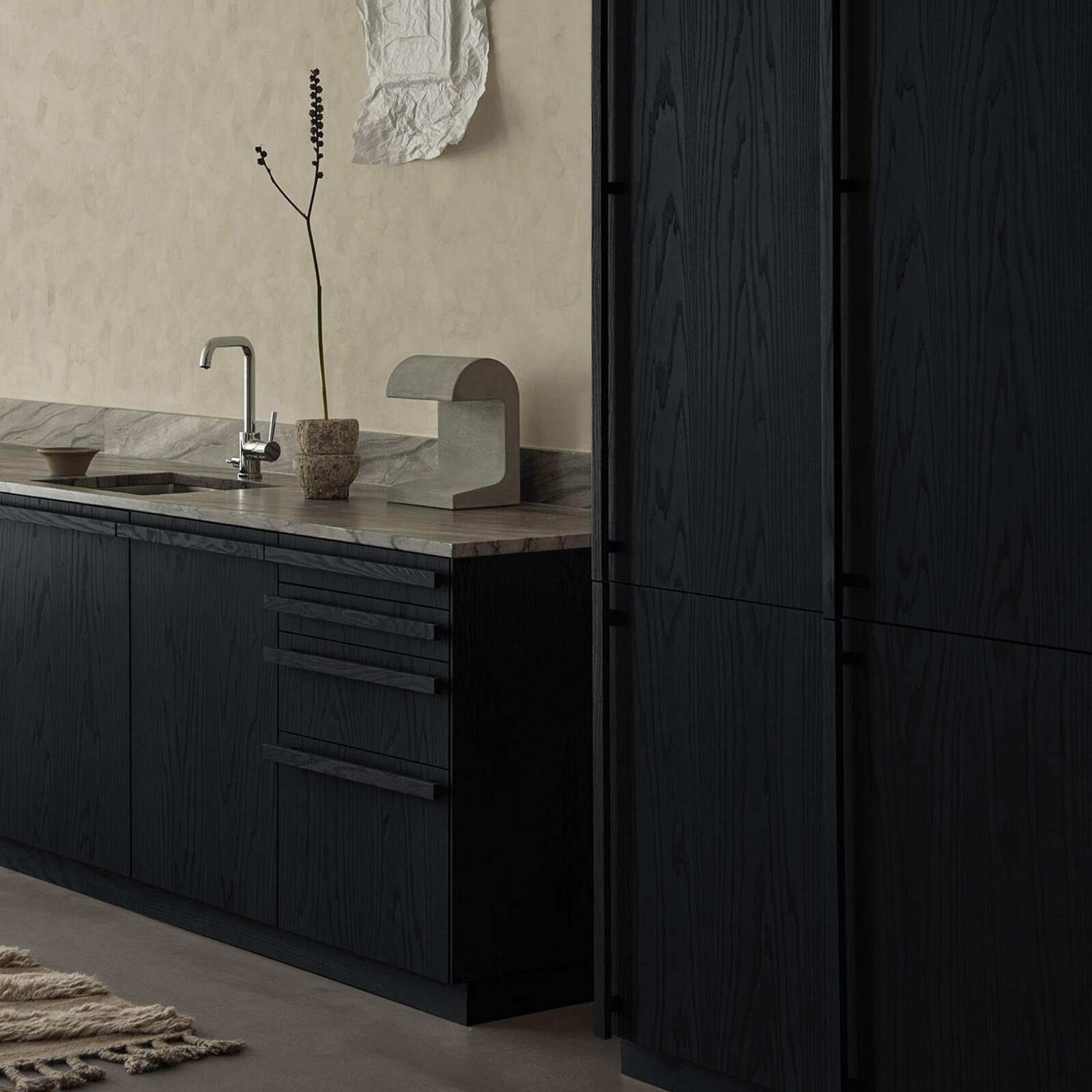 To achieve our lightest wood tone Alabaster Wood, we have only added a hint of white pigment to maintain the lustrous look of the untreated ash wood. With its cool elegance, ash wood – along with other light wood such as birch, pine and white oak – has a significant role in the Scandinavian design tradition. Since wood is a living material, colour, grain and structure may vary.