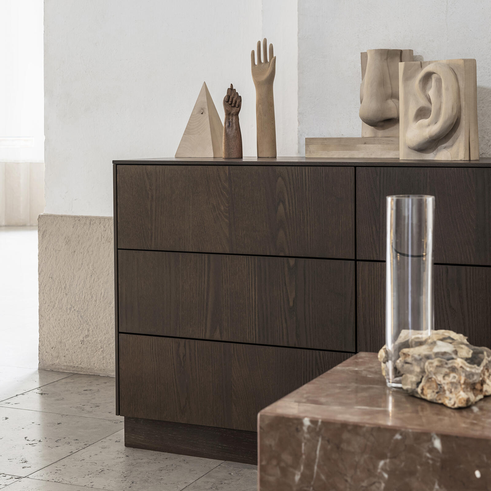 Wood is a living material. Colour, grain and structure can therefore vary from door to door. In order for the fronts to last over time, they are treated with UV-resistant stain and lacquer.
