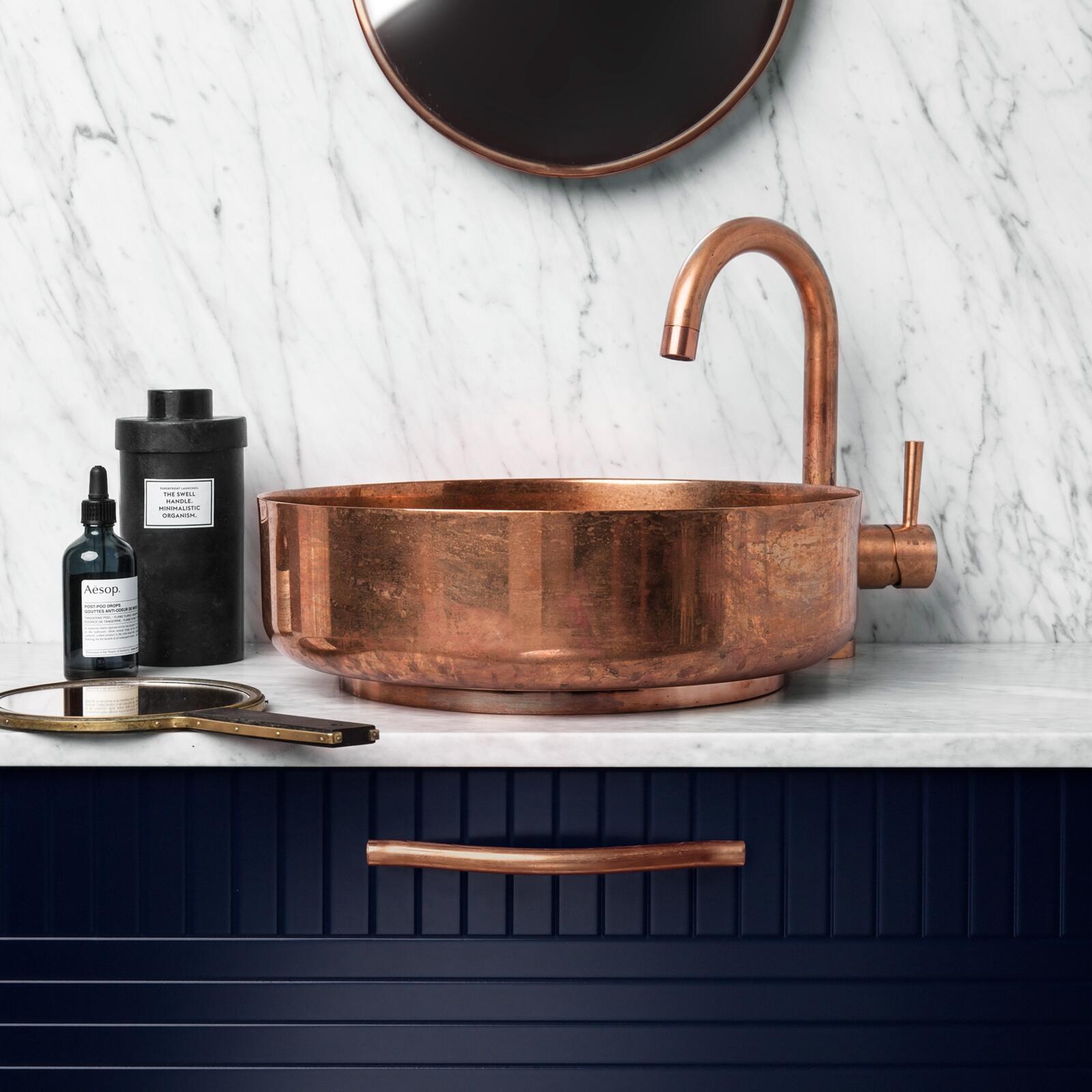 A timeless, true metal that we always leave untreated. This gives the copper the beautiful kind of patina that gives soul to a room.