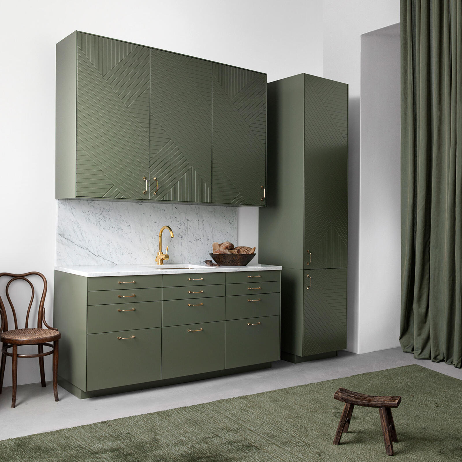 Note that you need to buy the hinges you need for your Metod cabinets at Ikea. The interior you choose for your cabinet determines the type of hinge required. Be aware that you cannot combine two 80 cm high frames from Ikea with this front because the joint between the frames then collides with the front’s middle hinges. Choose the 100 cm high frame + the 60 cm high frame instead.