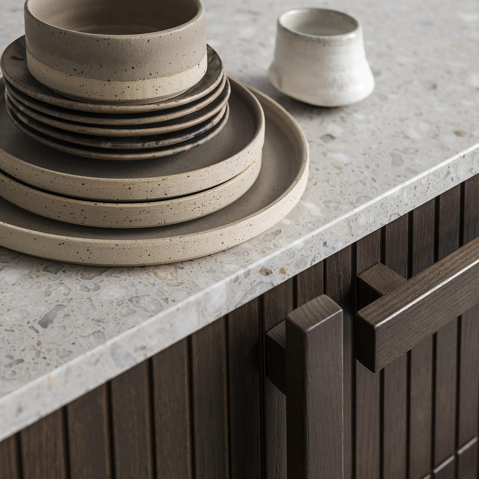 Les lignes verticales de cette porte font penser à ces bars élégants en bois massif et aux détails nervurés que l'on peut voir dans les hôtels à l’architecture de luxe. Avec nos portes plaquées bois, disponibles à la fois en laqué et en placage bois, pas besoin de faire appel à un architecte ou de sacrifier de grandes quantités de bois pour obtenir le même aspect de solidité et de raffinement dans votre maison !