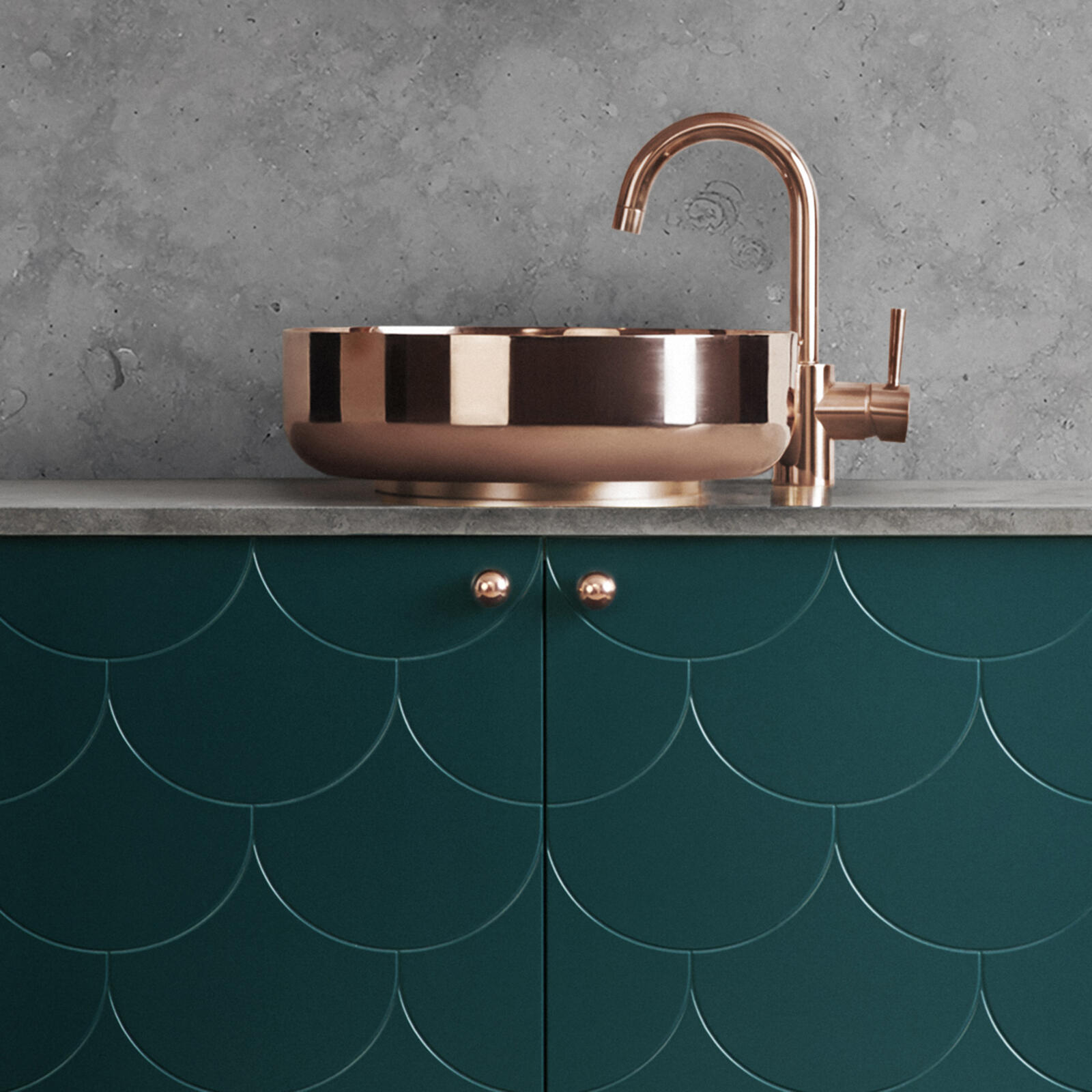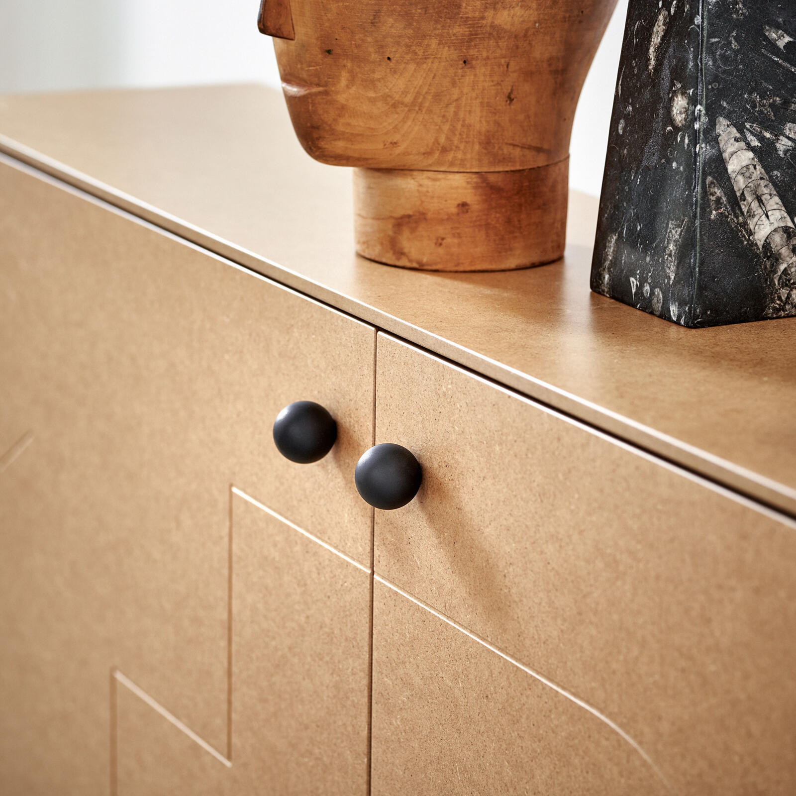 Mini Balls Metal est disponible en laiton, cuivre, aluminium et en noire mate. Le laiton et le cuivre ne sont pas traités et se recouvrent avec le temps d'une jolie patine. La poignée Mini Balls est inspirée du spectre de formes géométriques à la modernité éternelle. Une boule, une sphère, une forme sans fioriture. Léonard de Vinci aurait adoré !