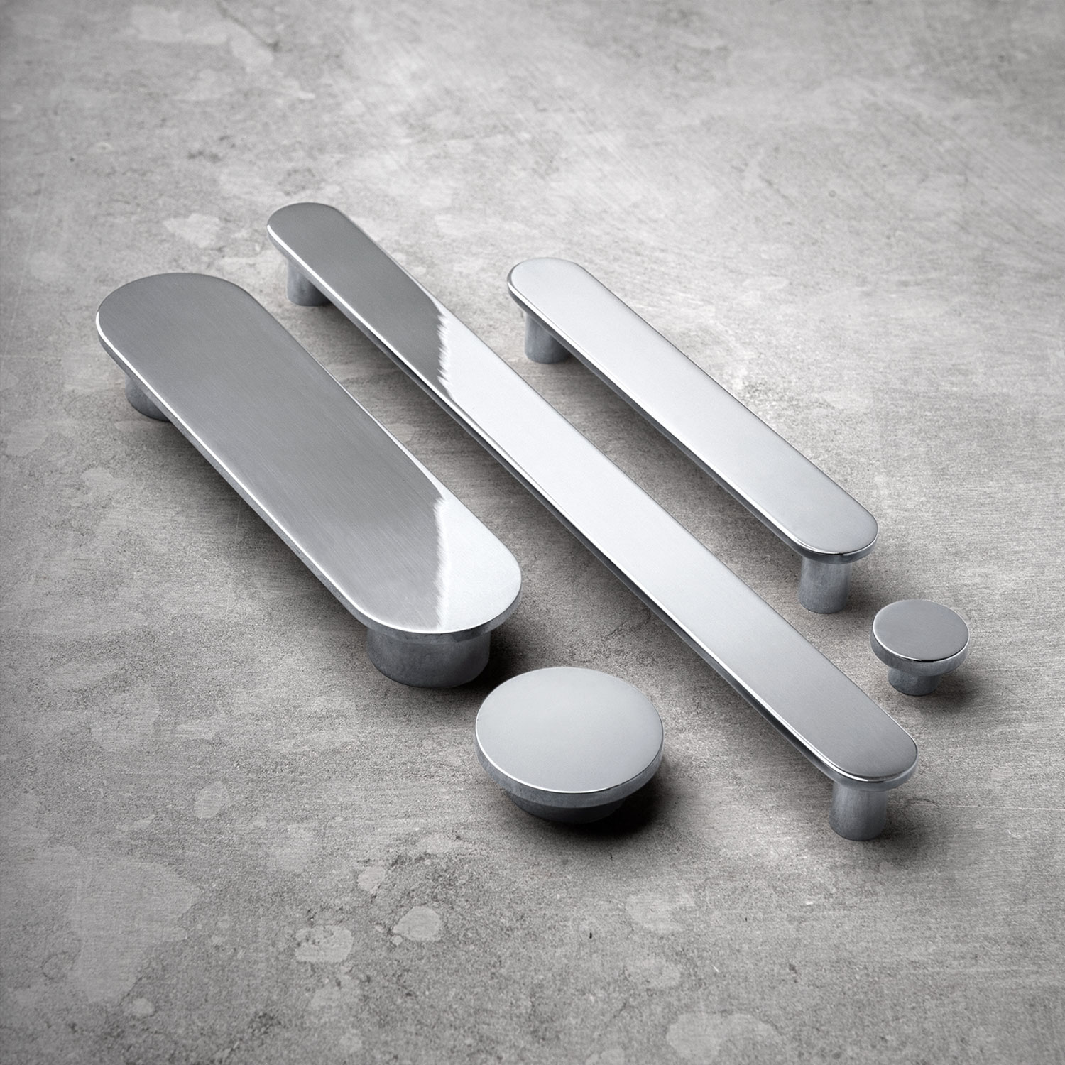 Use the handles throughout an entire kitchen or combine with one of the other members of the Circus family. Put them on a chest of drawers or wardrobe for an updated art deco look. The rounded shape and the elegant, mirror-like surface will give your furniture that exclusive feel that was so typical of the time.