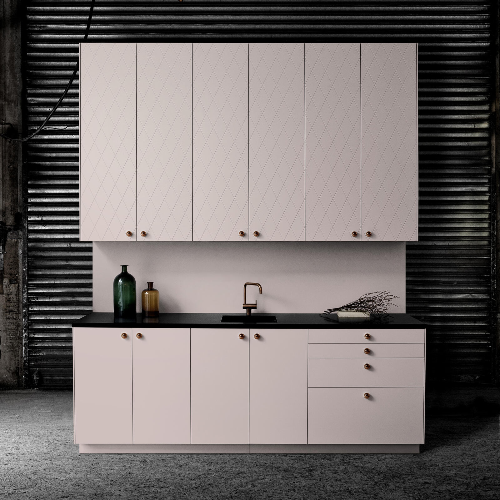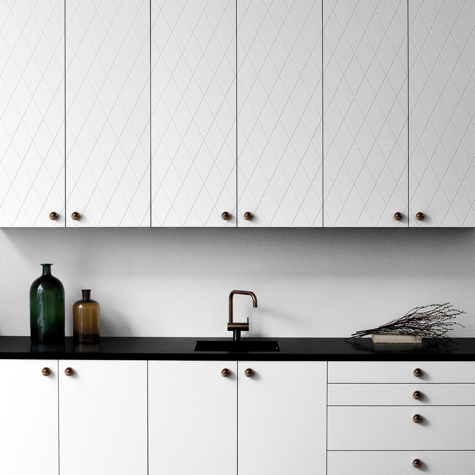 Note that you need to buy the hinges you need for your Metod cabinets at Ikea. The interior you choose for your cabinet determines the type of hinge required. Be aware that you cannot combine two 80 cm high frames from Ikea with this front because the joint between the frames then collides with the front’s middle hinges. Choose the 100 cm high frame + the 60 cm high frame instead.