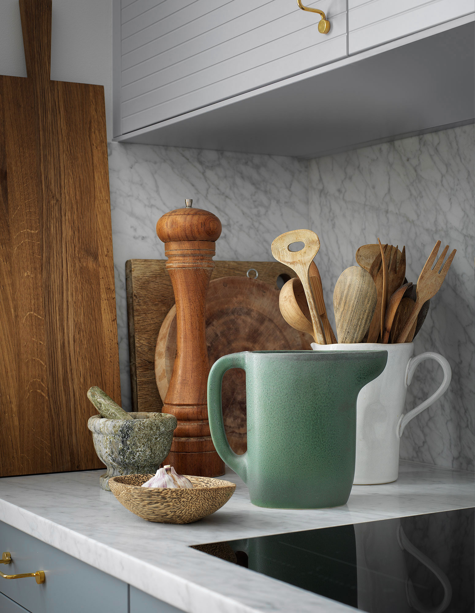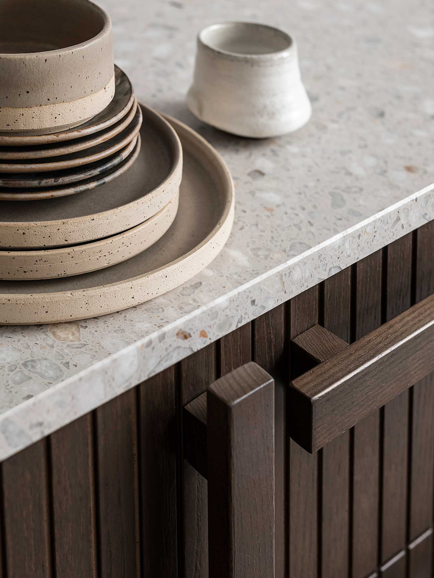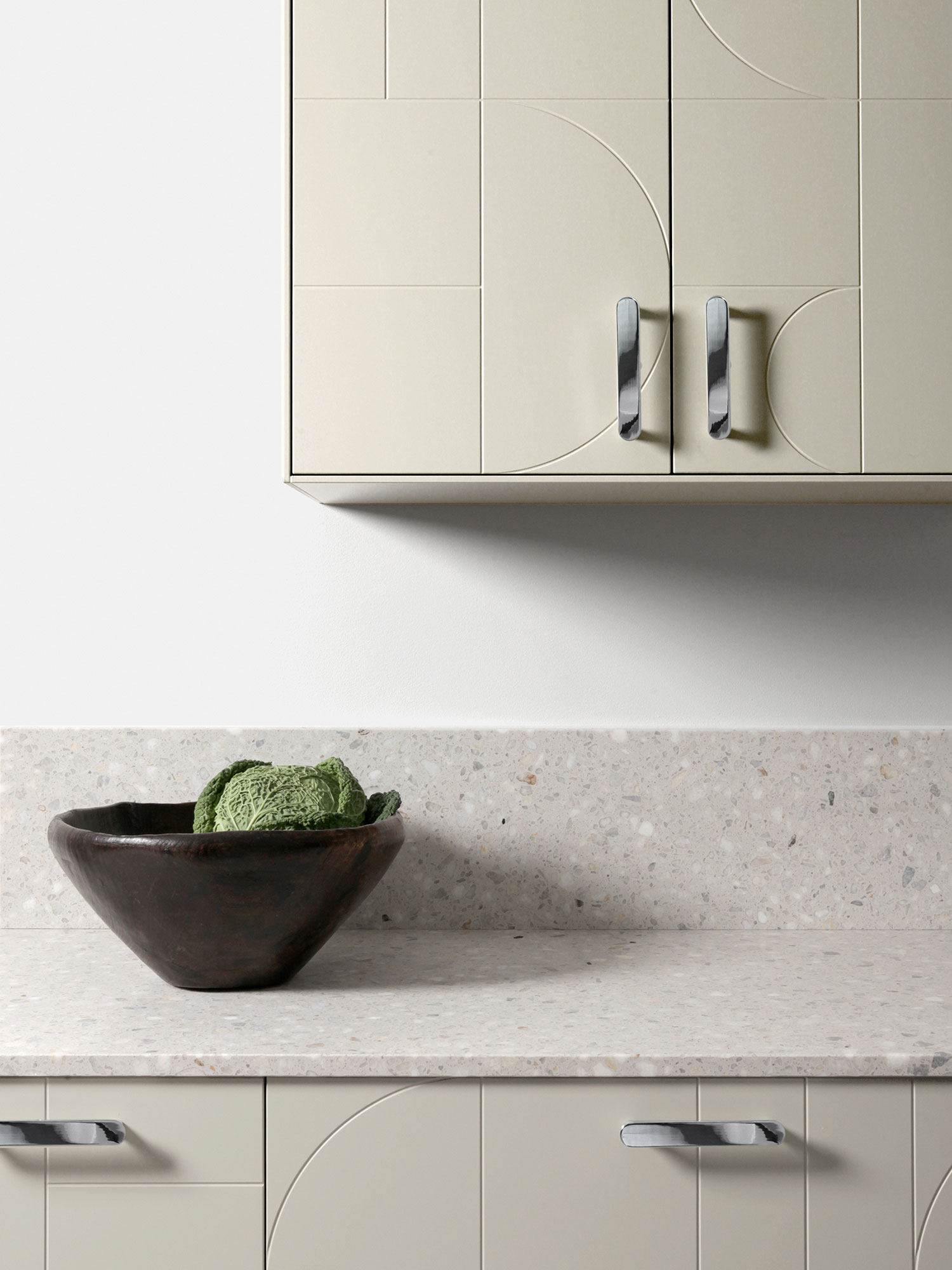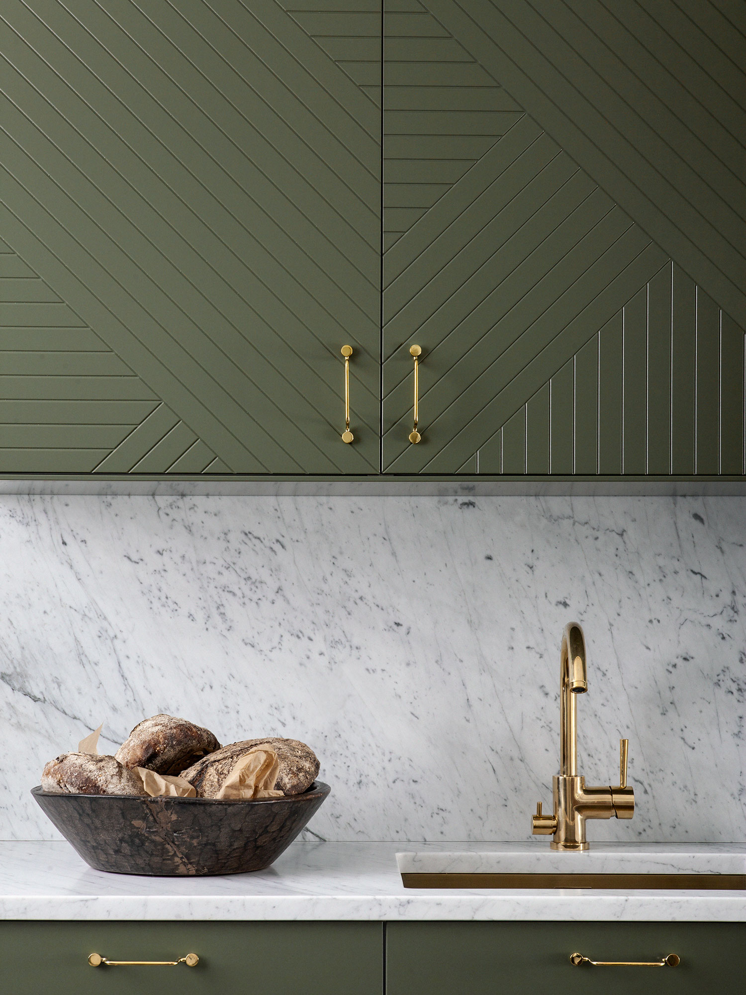 Doors and drawers PARALLELS Ashton Grey / Doors and drawers NO PATTERN Cloudy Grey / Handles WIRE Brass