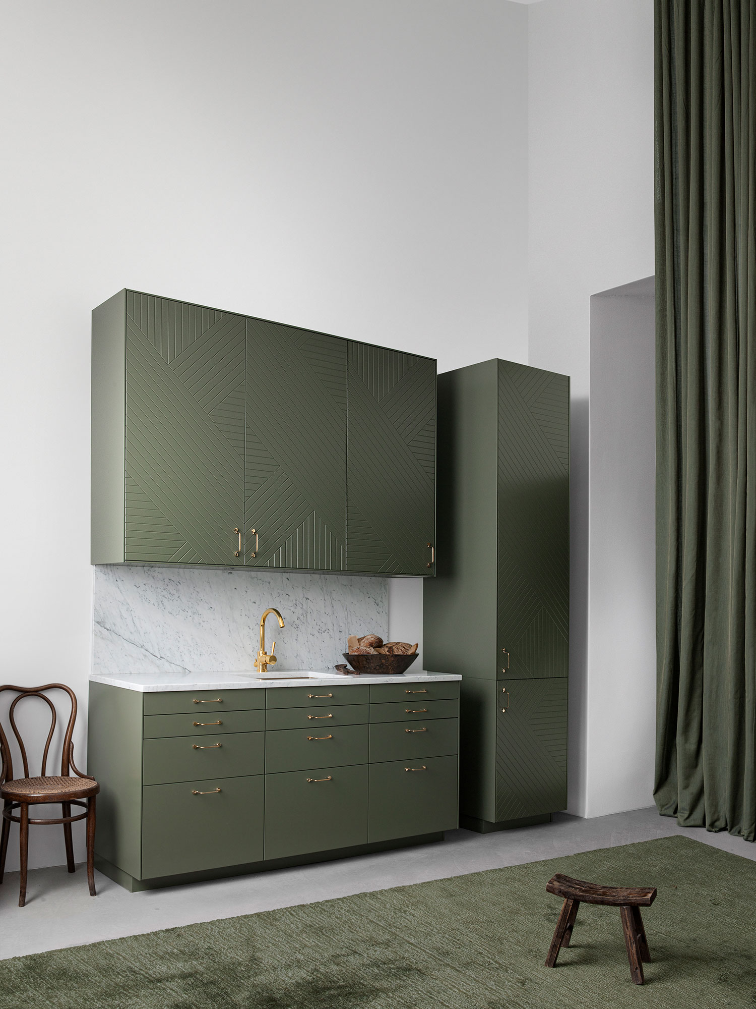 Doors and drawers FIELDS Willow Green / End panels Willow Green / Handles WIRE Brass / Legs PLINTH 220 Willow Green