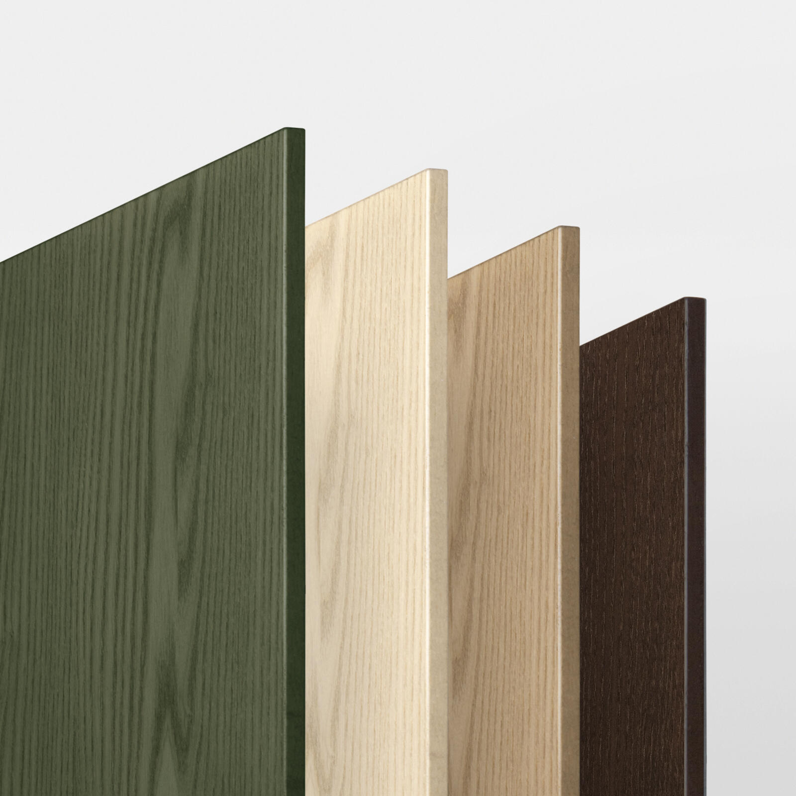 With our wood veneer cover panels for Pax, you can create wardrobes with a coherent and close-to-nature feel. The cover panels are available in seven unique shades of wood that match our wood veneer wardrobe doors.
