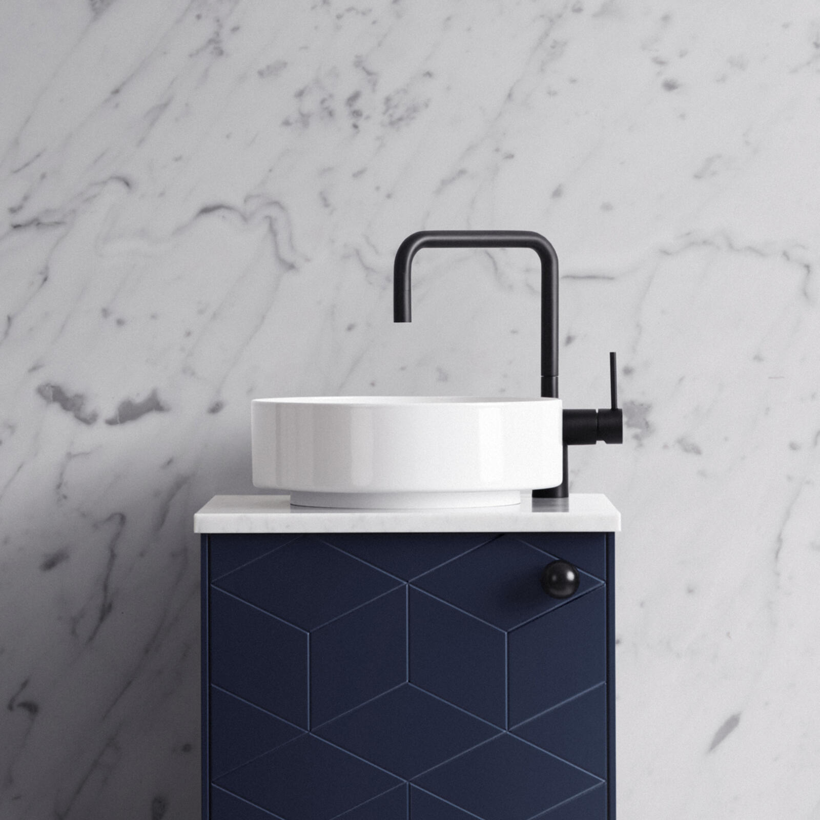 A mixer tap with a timeless design. Made of stainless, lacquered steel by Swedish Nivito. Available in white and black.